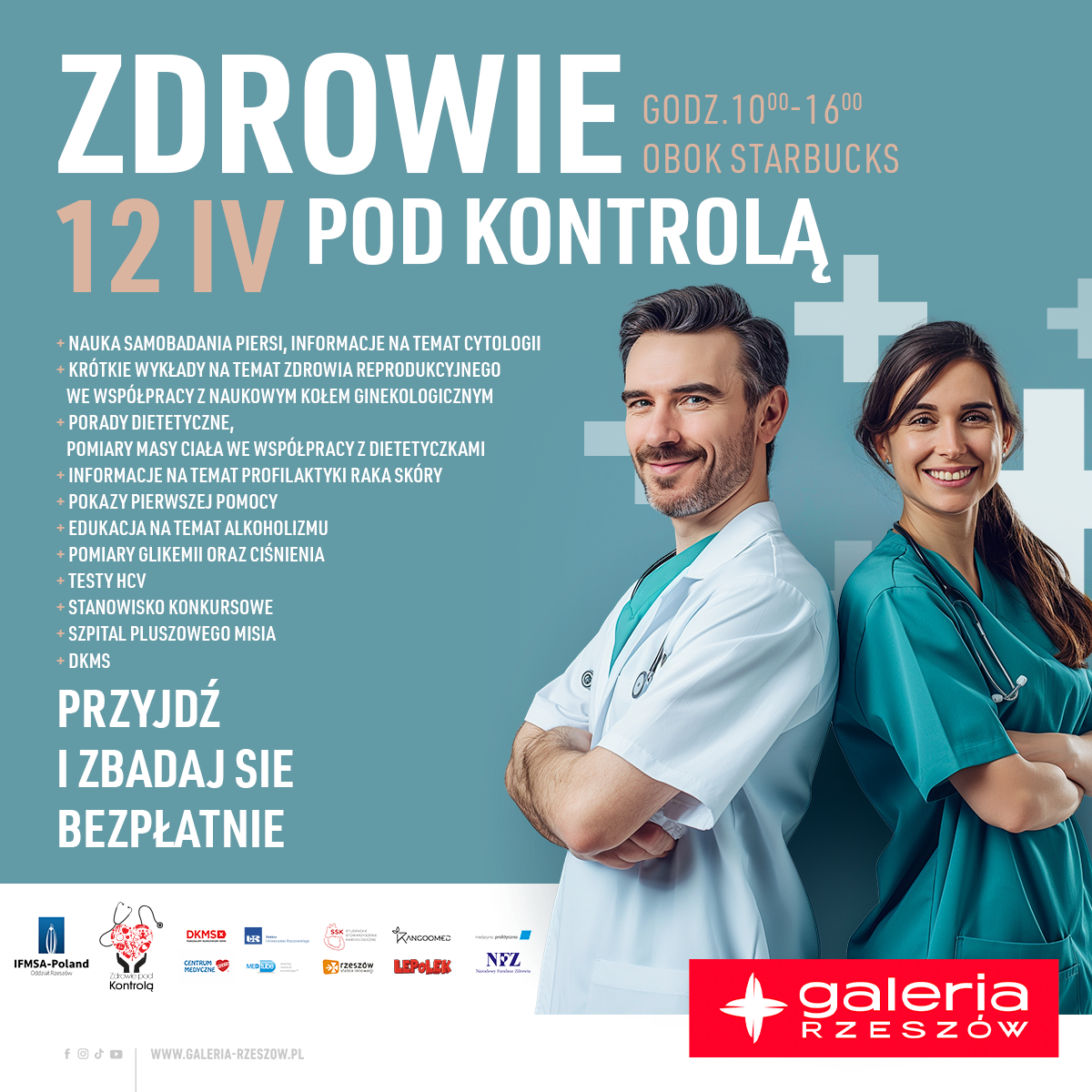 IFMSA-Poland Oddział Rzeszów wraz z Galerią Rzeszów serdecznie zaprasza na 30. edycję ogólnopolskiej akcji profilaktyczno-edukacyjnej „Zdrowie pod Kontrolą”.
